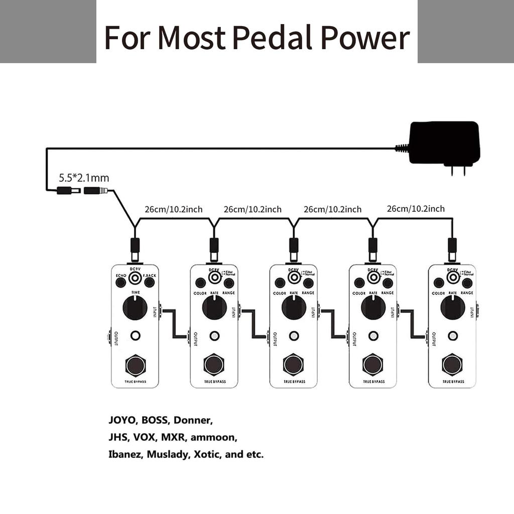 ШИРОКАЯ СОВМЕСТИМОСТЬ: Совместим с педалями гитарных эффектов таких брендов, как BOSS, ZOOM, Donner, Behringer, DigiTech, Jim Dunlop, MXR, Nobels, NUX, TC Electronic, Xotic и т. д.. Его также можно использовать с другими электронными устройствами, такими как клавиатуры с отрицательными наконечниками.