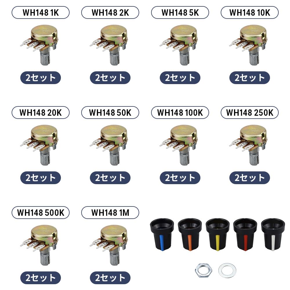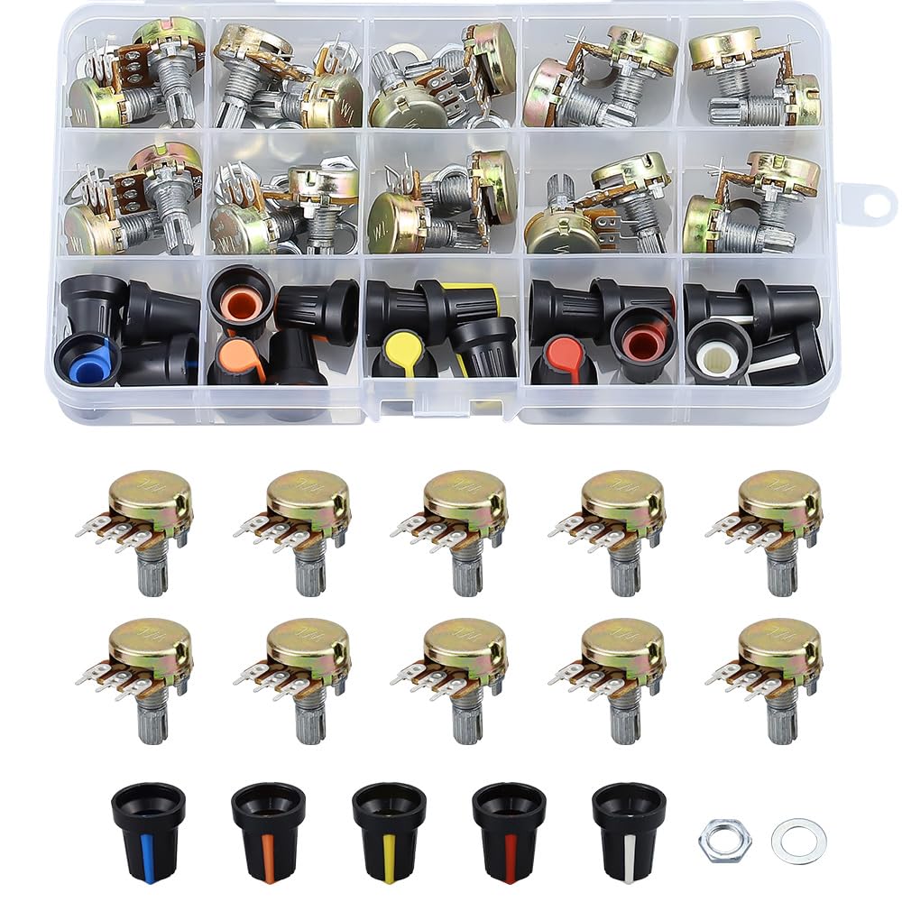 Глванер Потенциометр B1K B2K B5K B10K B20K B50K B100K B250K B500K B1M Набор из 20 штук с кейсом для хранения и колпачком-ручкой Белый Регулятор громкости Поворотный Красный,