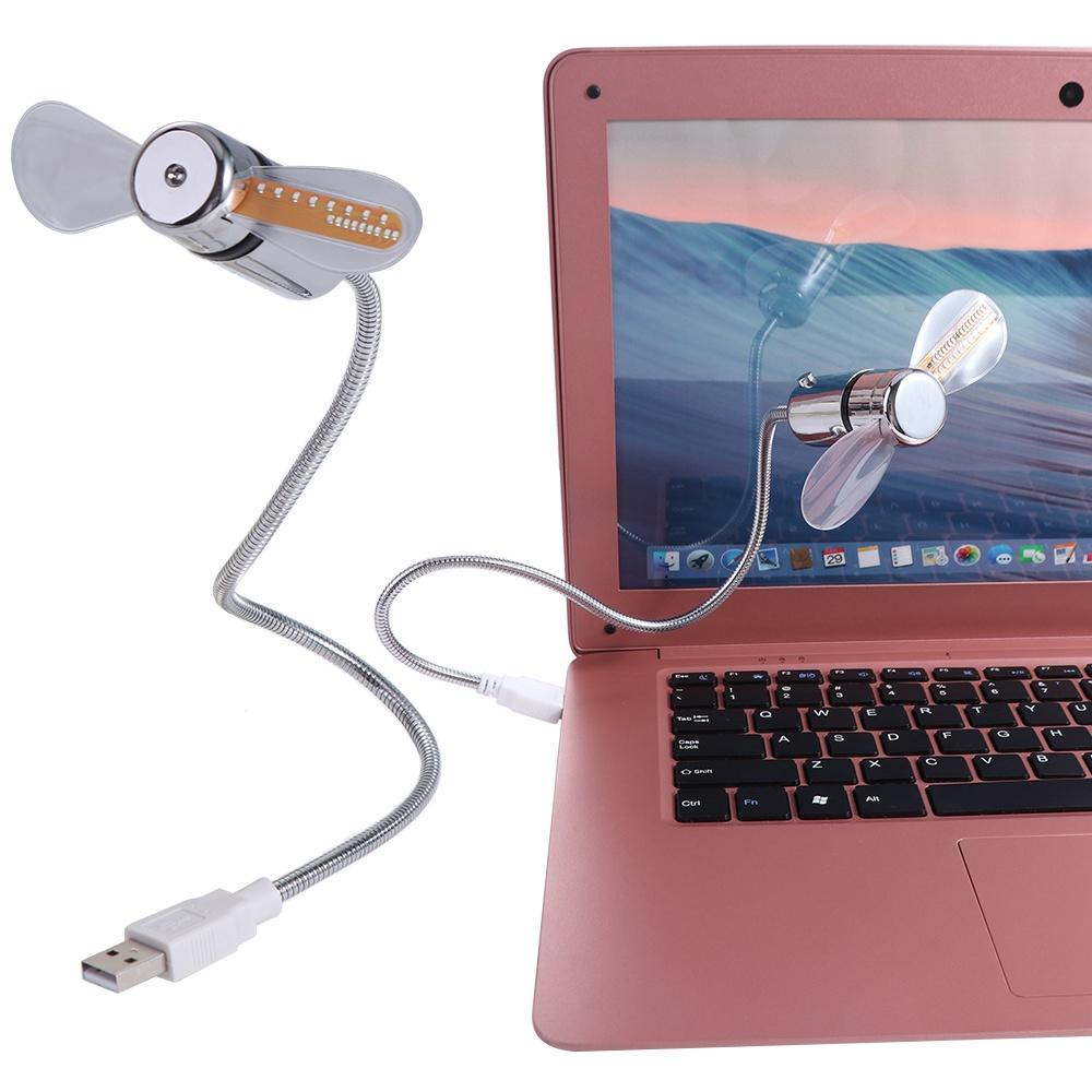 Time Temperature Display Clock Cool Fan Flexible Gooseneck LED Clock Fan Durable Laptop