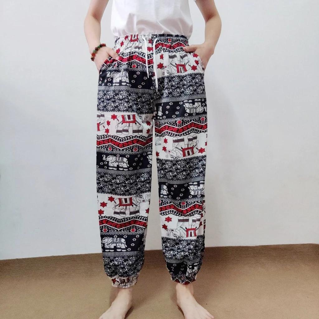 Слоны Штаны для прыжков Карман Регулируемая эластичная высокая талия Ремешок Унисекс Мужской Женский Принт Таиланд Повседневная уличная одежда Пляжный Бохо Ретро Винтаж