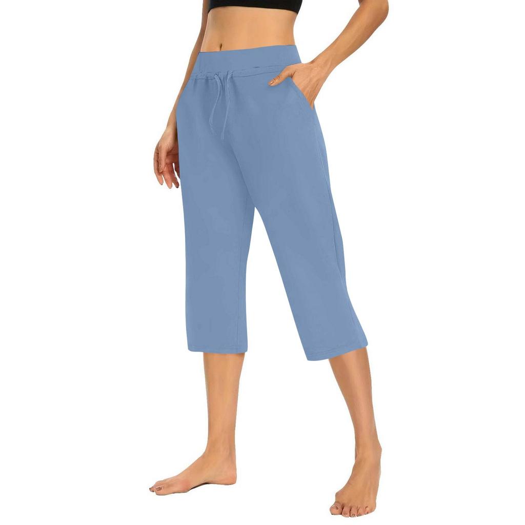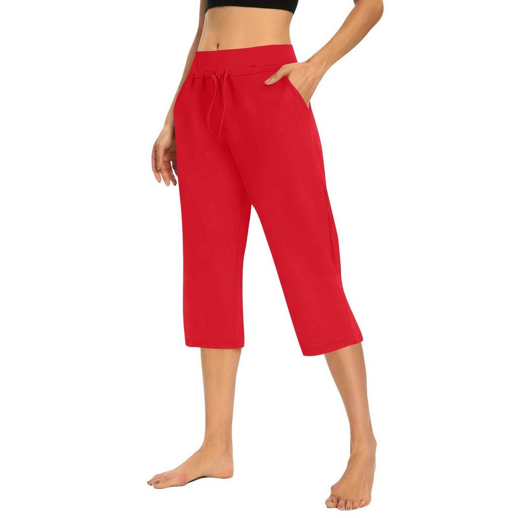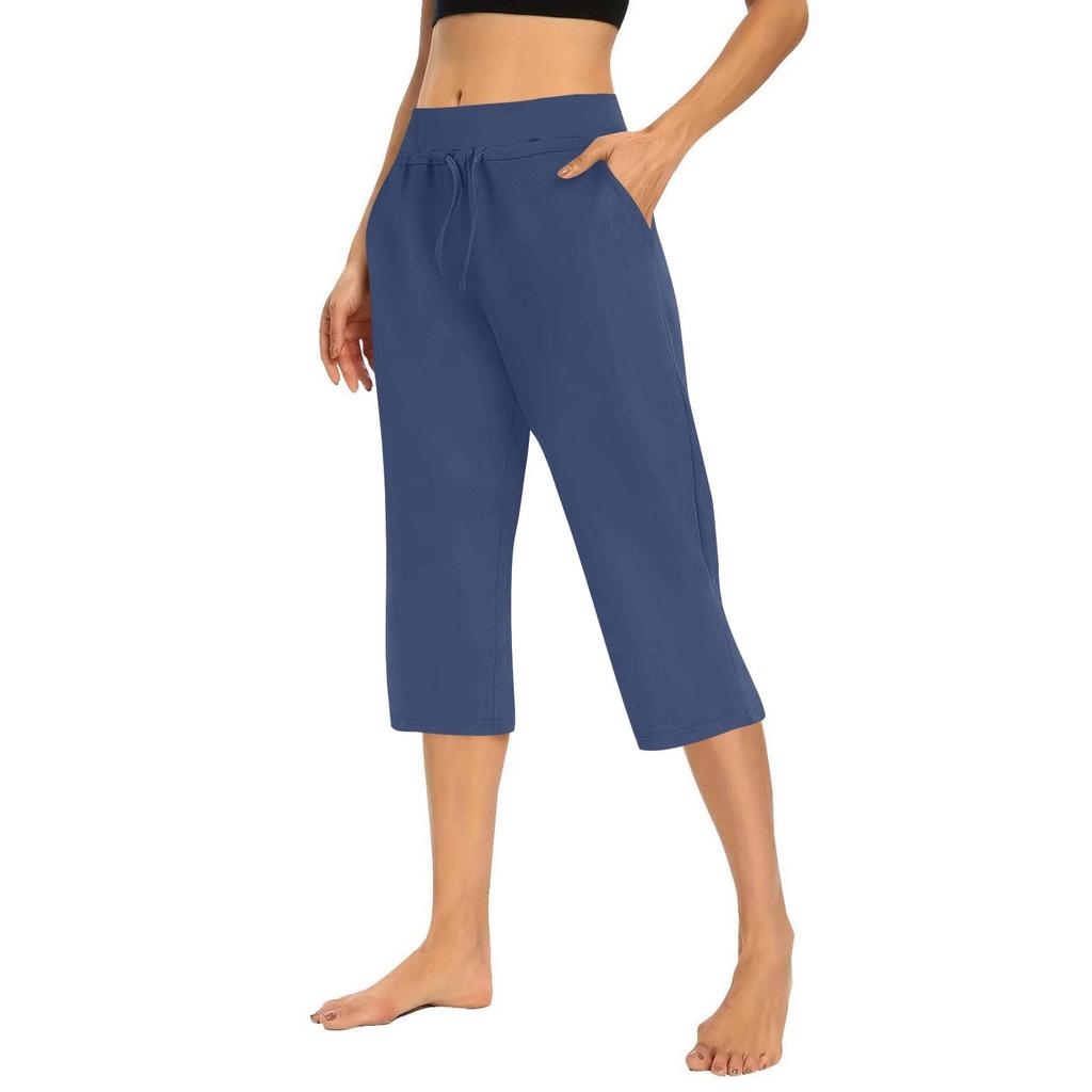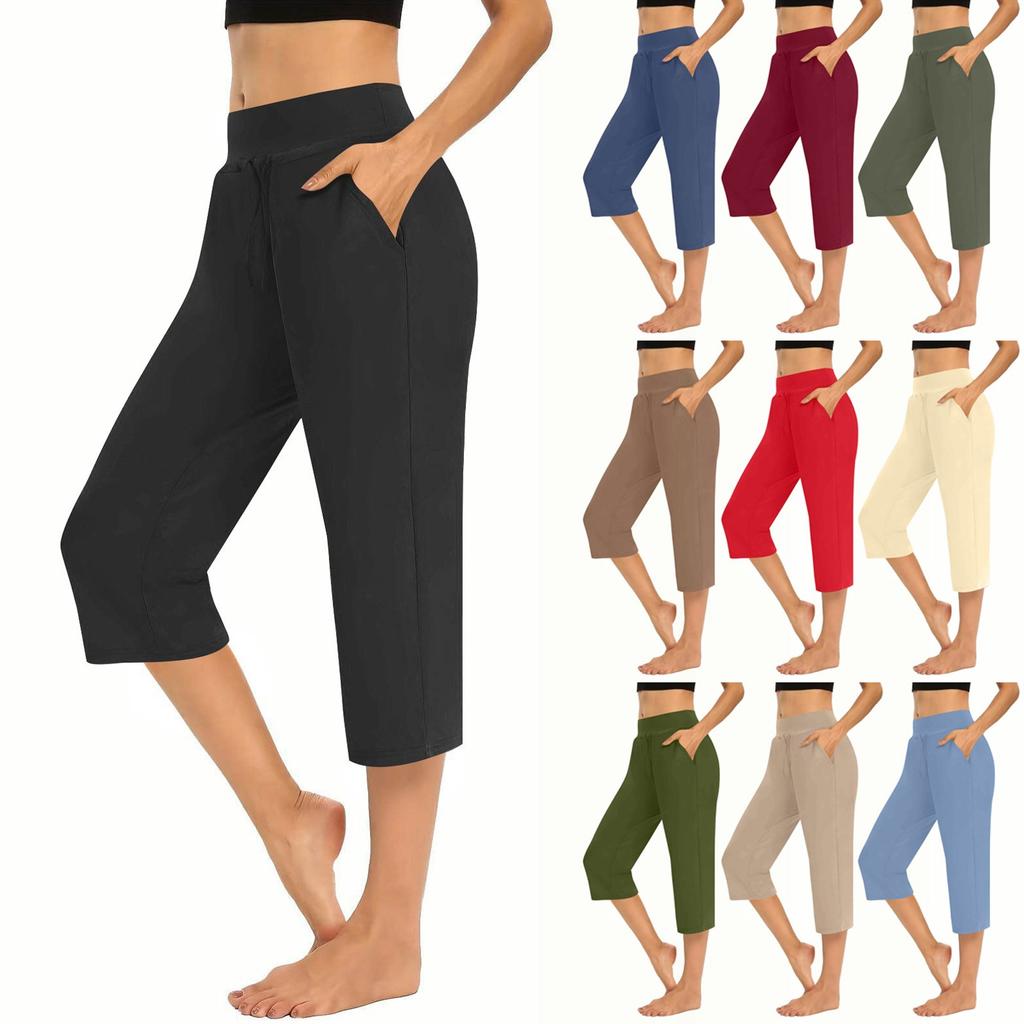 Женские однотонные повседневные брюки, эластичная талия, высокая посадка, кулиска, брюки 3/4, спортивные повседневные брюки