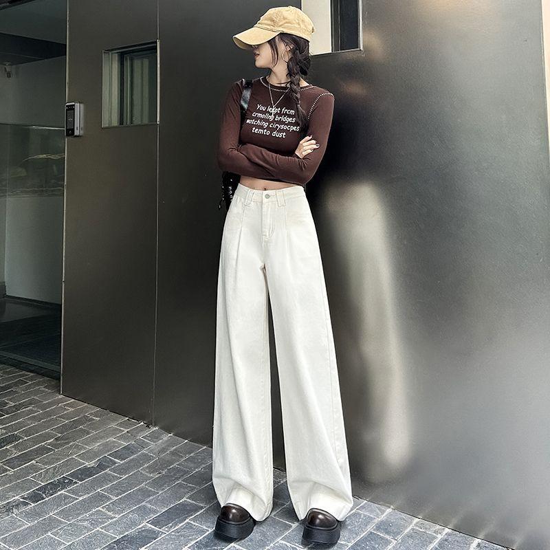 Белые джинсы с высокой посадкой и широкими штанинами для женщин на осень и зиму. Новые прямые и свободные, прямые и облегающие, драпированные брюки до пола, плюс бархат.
