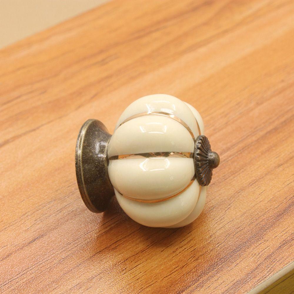 Single Hole Ceramic Pumpkin Handle European Style Drawer Knobs Retro Cabinet Knob Furniture