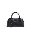 Эта сумка имеет стильный, структурированный силуэт сумки-боулинга, изготовленный из воловьей кожи.. Он отличается гладкой, полированной текстурой, классическим дизайном с верхней ручкой и декоративными клапанами, а также компактной, но элегантной формой.. Минималистичный вид придает ему вневременную, изысканную привлекательность.