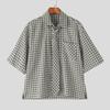 INCERUN Летние мужские рубашки оверсайз с завязками на шее, с рукавом до локтя, в клетку, повседневные, свободного кроя