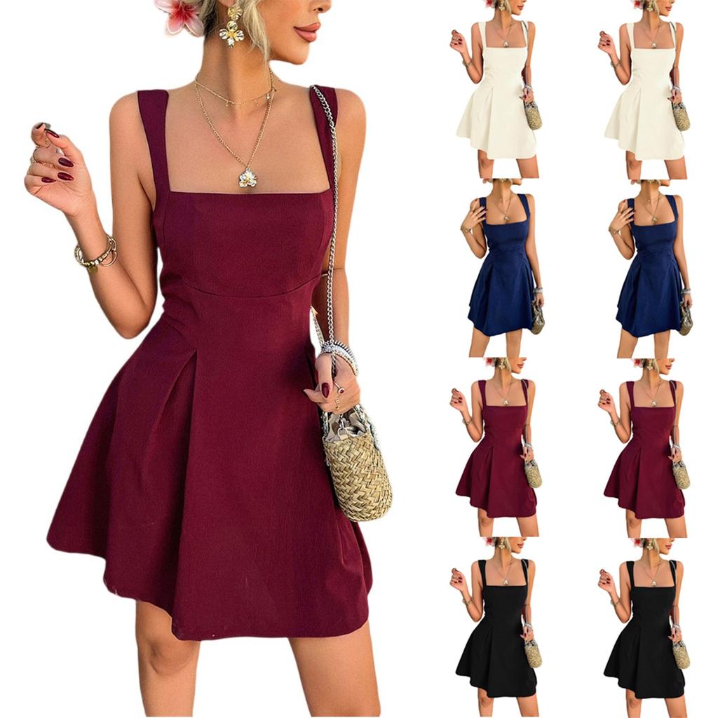 Женское модное и элегантное платье-комбинация без спинки однотонной расцветки