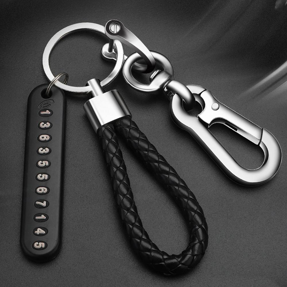 Car Accessories Leather Bradied Key Chain Phone Number Plate Keyring Car Keychain Anti-lost