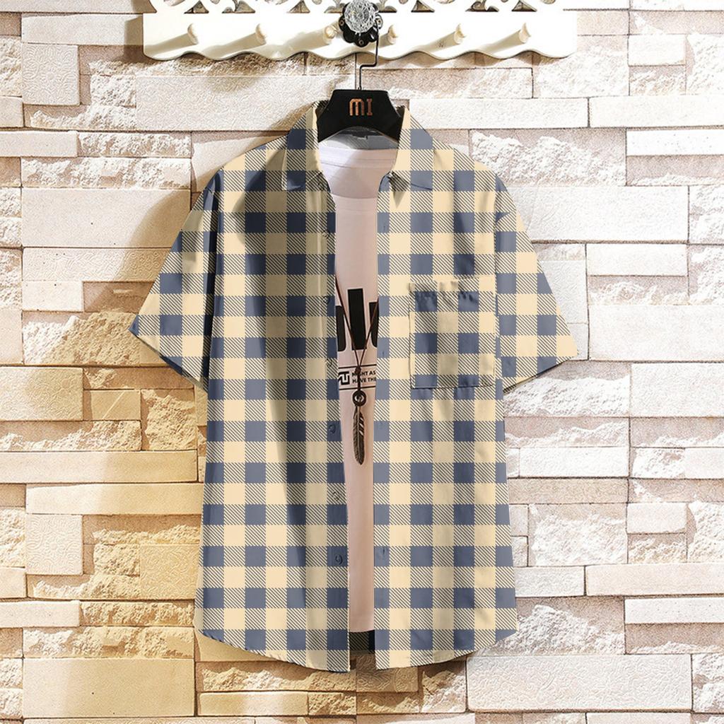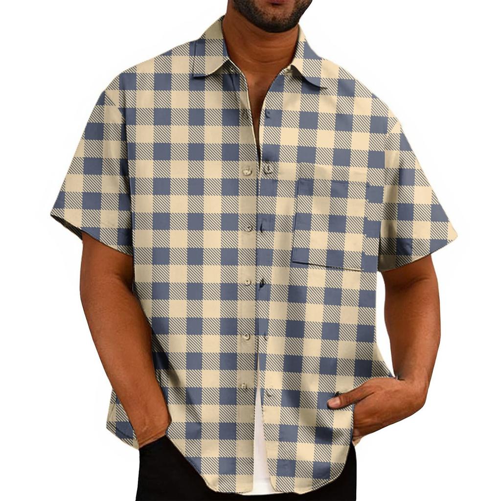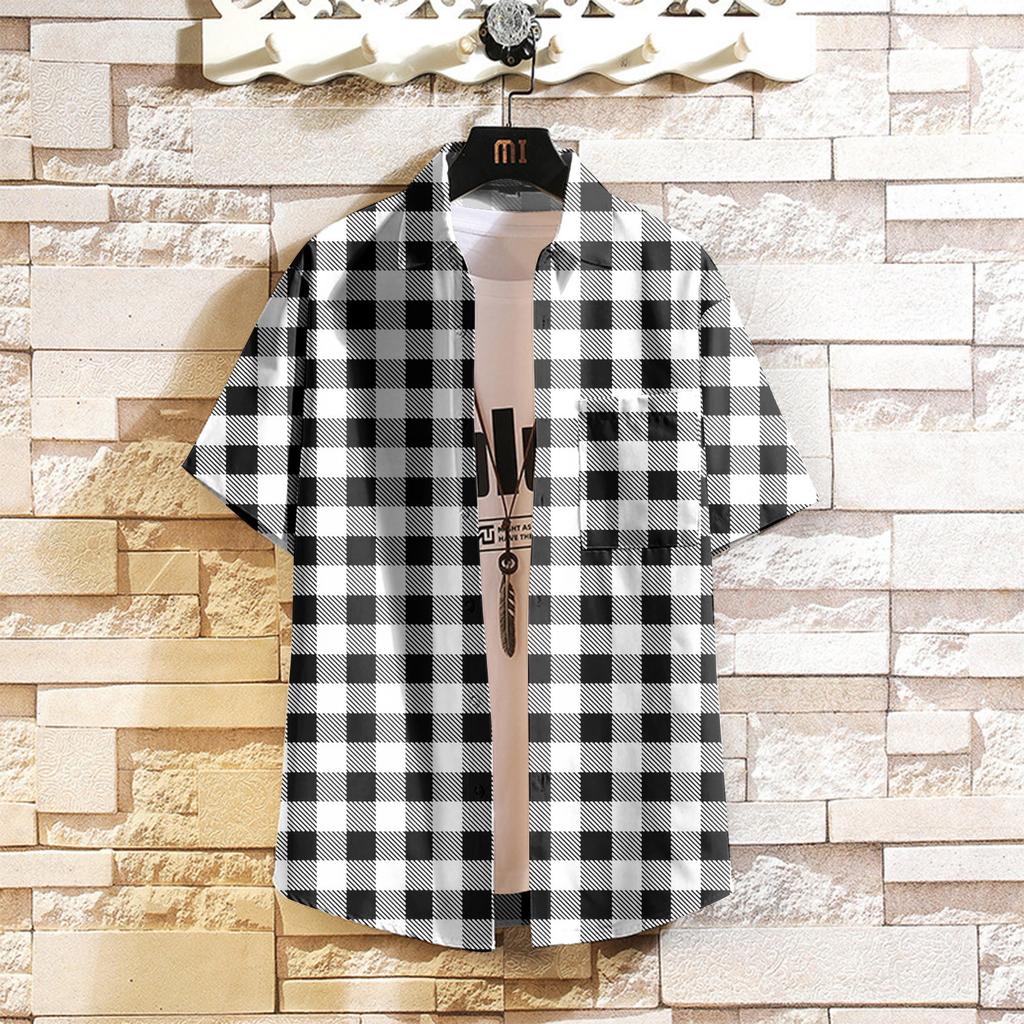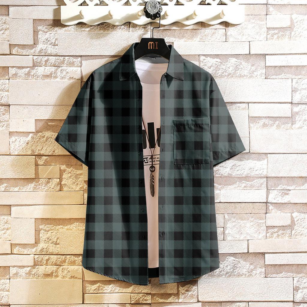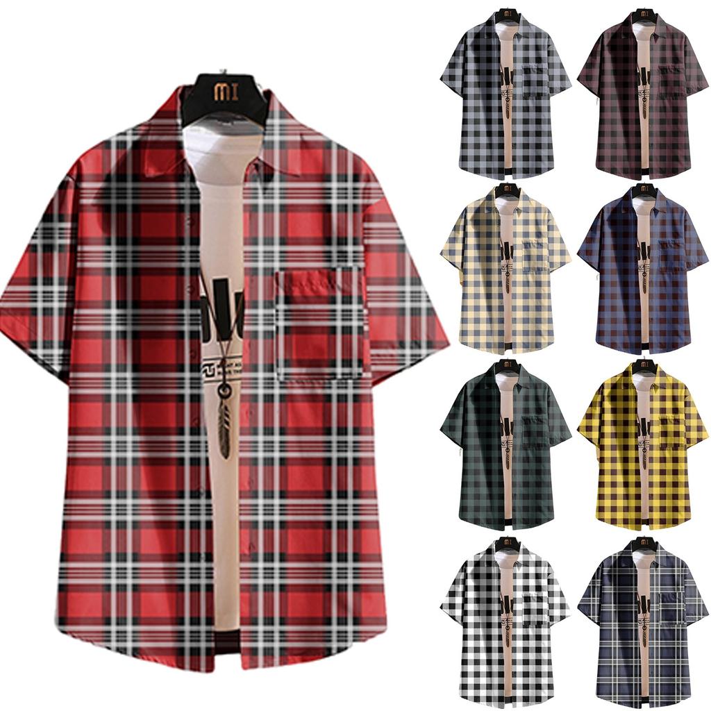 Мужская клетчатая рубашка, рубашка с коротким рукавом, летняя повседневная одежда