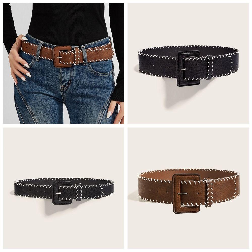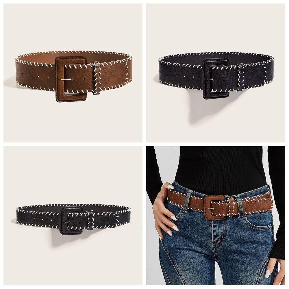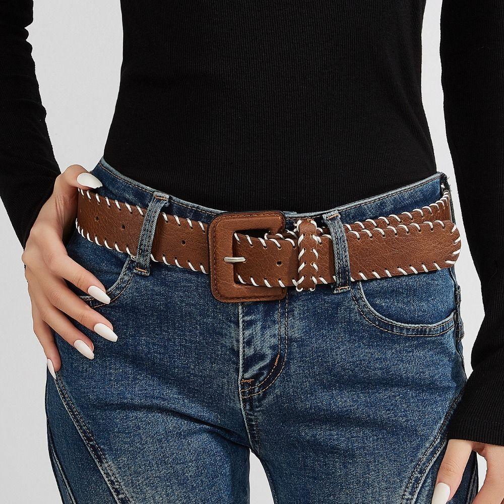 Харадзюку ПУ Кожаный Пояс Ретро Западный Ковбойский Пояс Мода Винтажный Широкий Пояс Леди