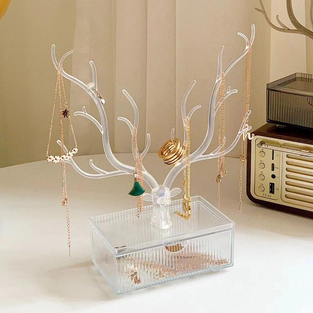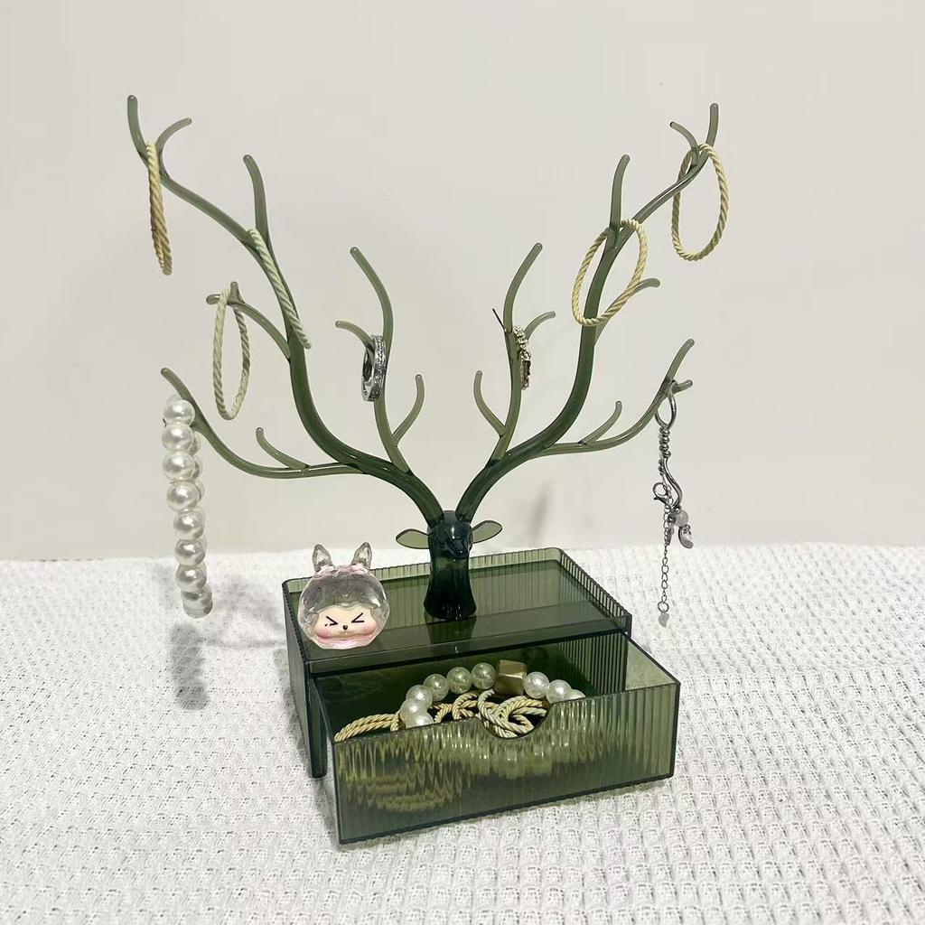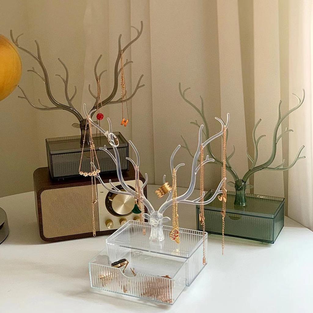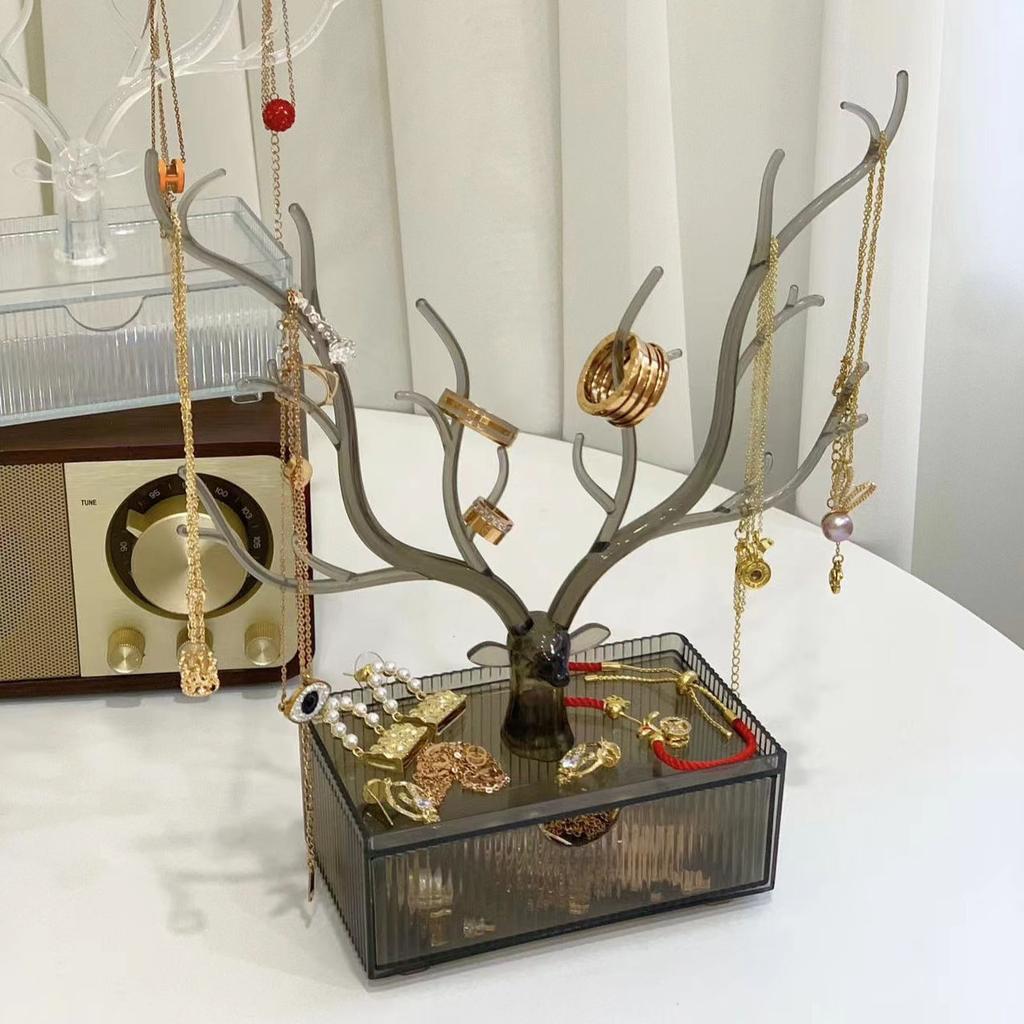 Органайзер для украшений на тему оленей, Подвесная стойка для серег-гвоздиков и браслетов, Настольная подставка для хранения и демонстрации с подносом для украшений для серег, колец и аксессуаров