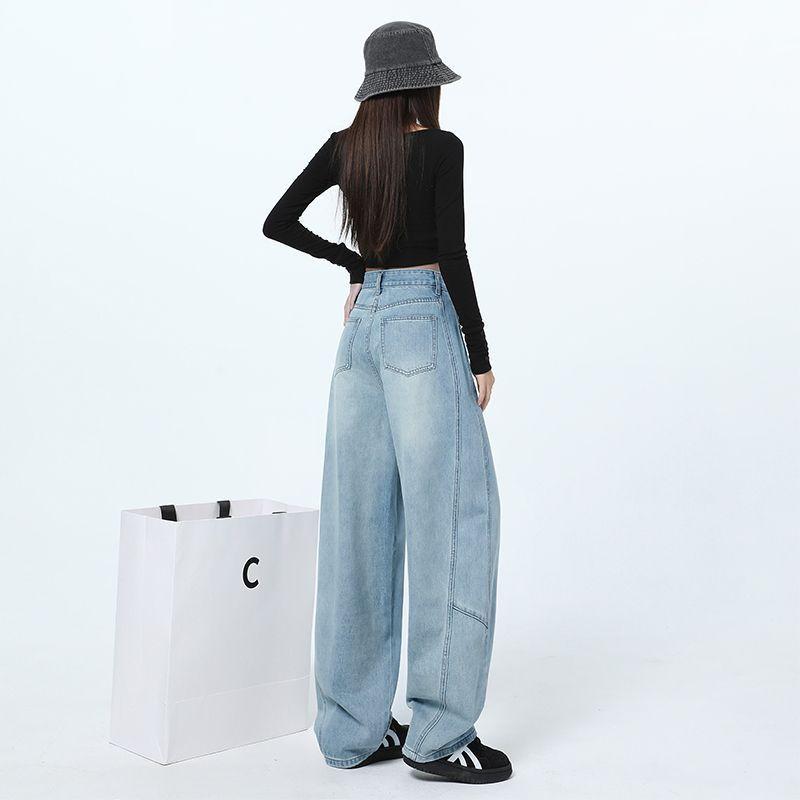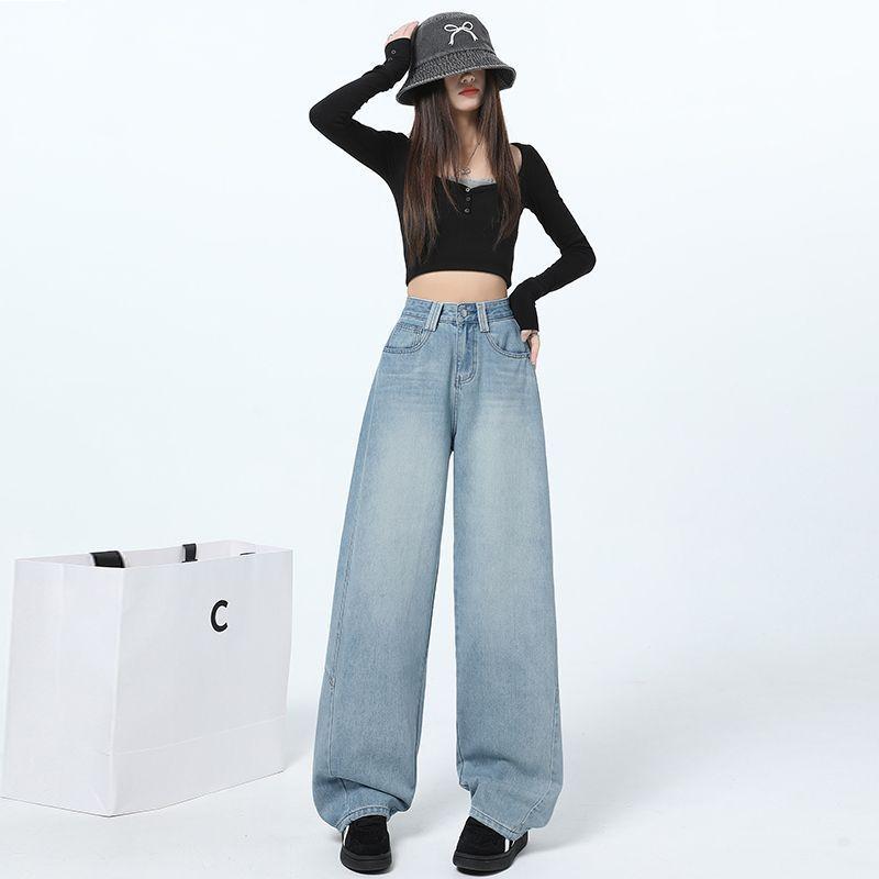 Джинсы с высокой талией в стиле ретро с широкими штанинами для женщин, весенний новый стиль, моппинг, прямые и свободные, стройнящие и ниспадающие штаны