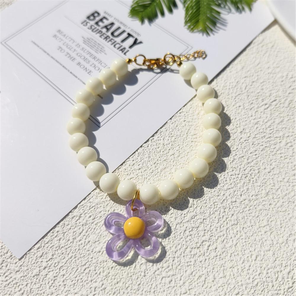 Регулируемый жемчужный кошачий ошейник с подвеской-шармом в виде цветка, модное ожерелье для маленьких собак, щенков, ювелирные аксессуары, ожерелье для домашней кошки