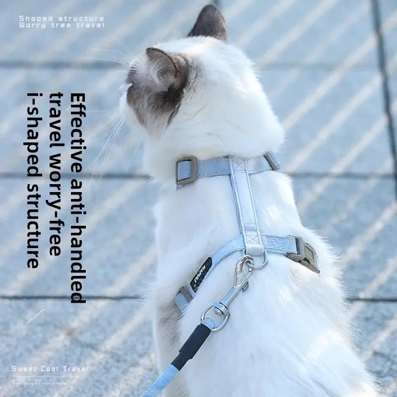 Комплект шлейки и поводка для кошки, регулируемая, защищенная от побега, мягкая шлейка-жилет для котенка для прогулок на улице, зоотовары с ошейником — купить товар онлайн с бесплатной доставкой по всему миру!