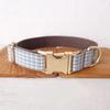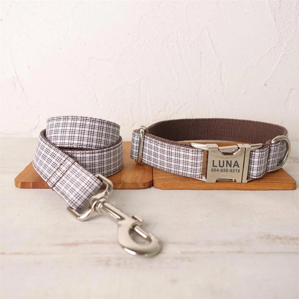 Персонализированный ошейник для собаки с бесплатной гравировкой, подходящий поводок для питомца, металлическая пряжка с настраиваемыми контактами, коричнево-белый клетчатый ошейник для питомца