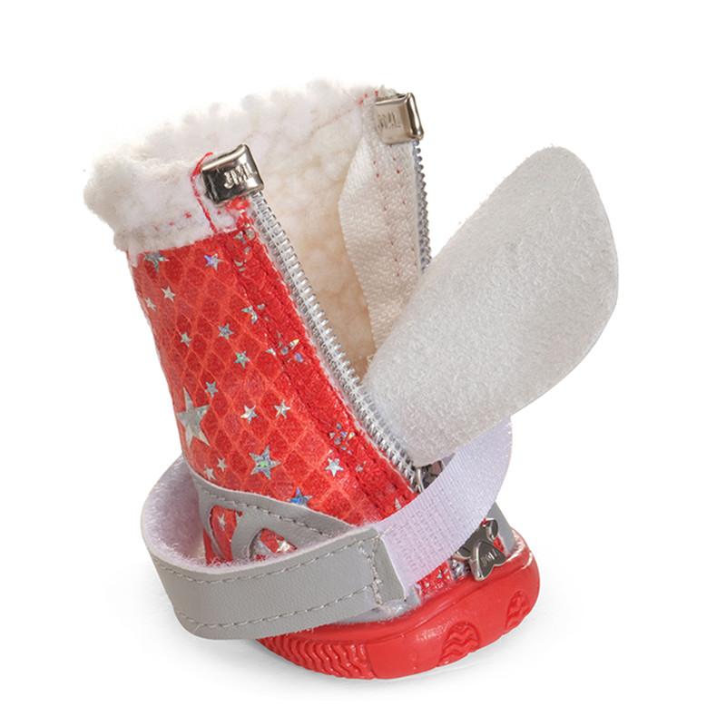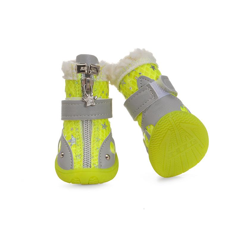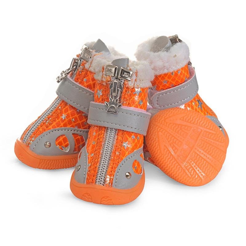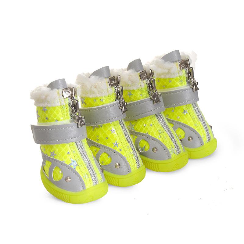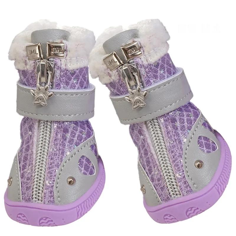 Блестящие ботинки-заклепки для собак, зимние теплые флисовые ботинки для домашних питомцев, нескользящие ботинки для маленьких собак, обувь для чихуахуа, йоркширского терьера