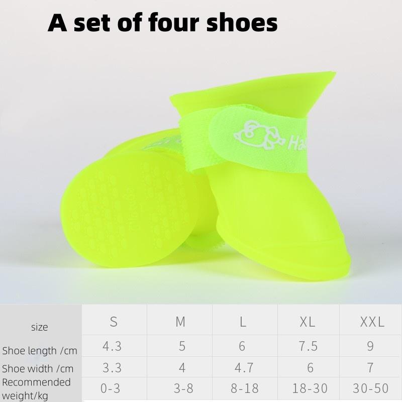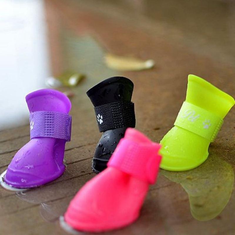 Группа из четырех разноцветных дождевых тапочек для домашних животных, силиконовые нескользящие водонепроницаемые тапочки для собак, товары для животных, чехол для лапок собак