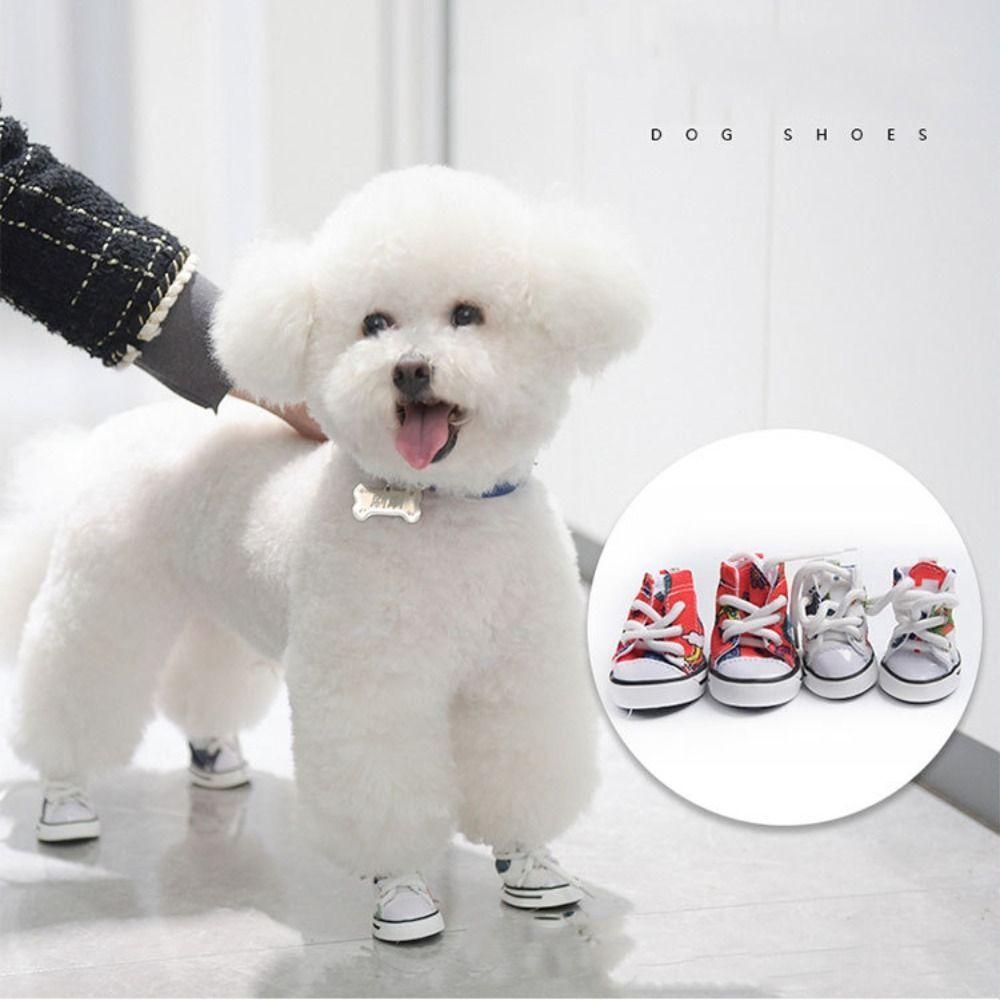 4 шт. Милые износостойкие холщовые туфли для собак, Модные нескользящие джинсовые ботинки для питомцев, Повседневная обувь, Спортивные кроссовки для щенков, Для улицы — купить товар онлайн с бесплатной доставкой по всему миру!