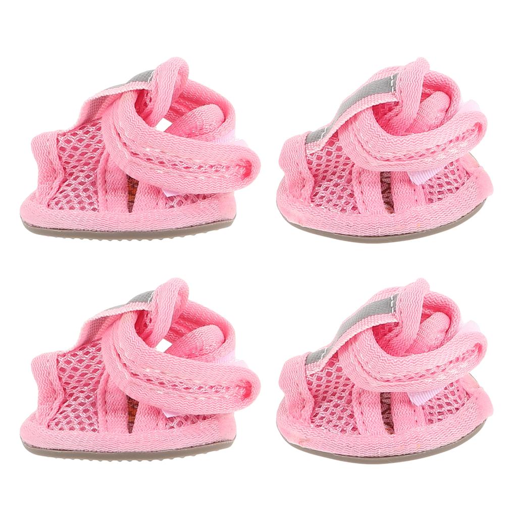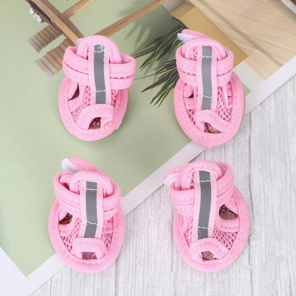 4 шт.. Летние дышащие ботинки для собак, сетчатые сандалии, обувь для собак, нескользящие кроссовки, товары для питомцев (роза) - размер 4