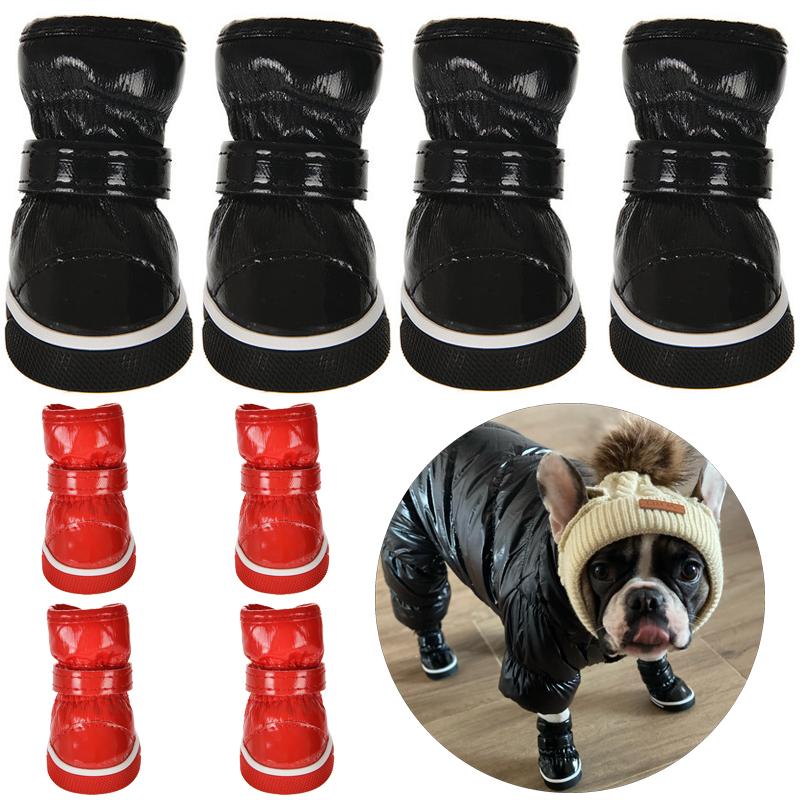 Теплые флисовые ботинки для собак средних и маленьких собак, кошек, зимние водонепроницаемые нескользящие щенячьи зимние ботинки для собак, кроссовки для французских бульдогов для домашних животных