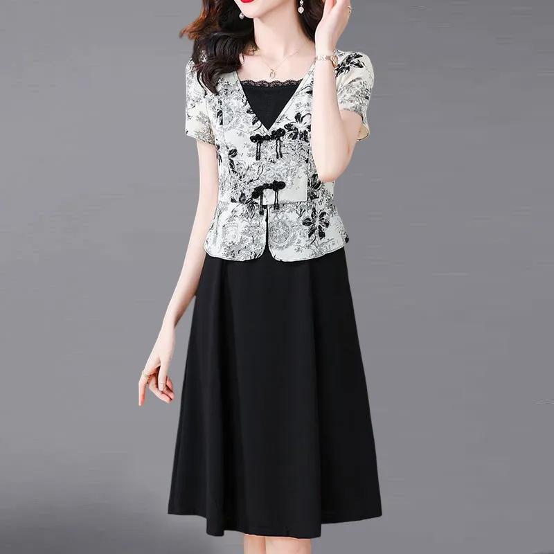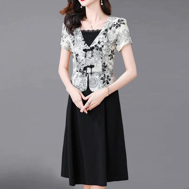 Юбка для женщин, летняя, больших размеров, свободная, цветочная, винтажная, повседневная, с принтом, мягкая, длинная, праздничные платья