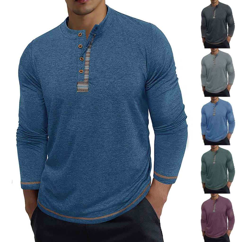Мужская весенняя однотонная футболка с лацканами, застежкой на 3 пуговицы, длинным рукавом