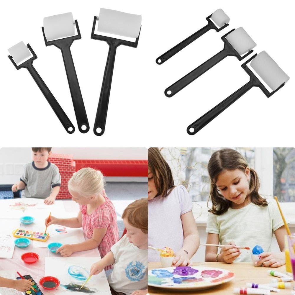 3pcs/set Sponge Brush White Sponge Brush Roller Brush Foam Painting Roller Brush Kindergarten