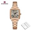 NAVAFORCE Женские кварцевые часы Церемония Вечеринка Ремешок из нержавеющей стали Водонепроницаемые Квадратный римский циферблат Женские повседневные модные аксессуары Часы NF5065