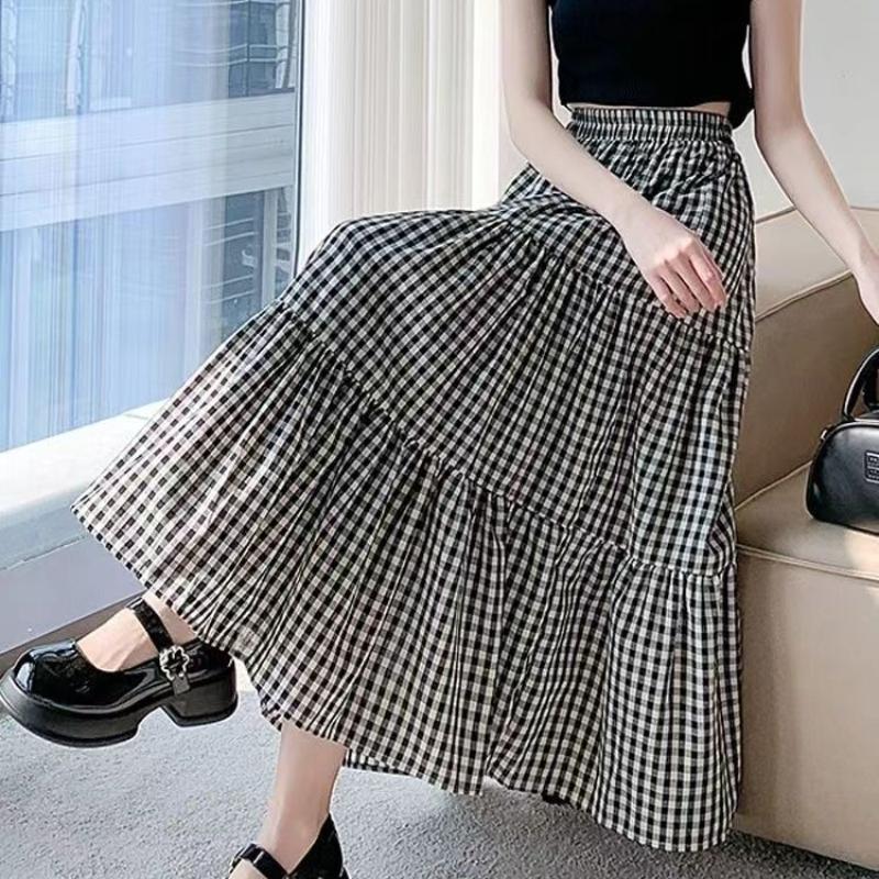 Женская летняя юбка-торт с эластичной талией - Винтажная юбка миди А-силуэта с панелями и плиссировкой, с высокой посадкой, для прикрытия бедер и похудения
