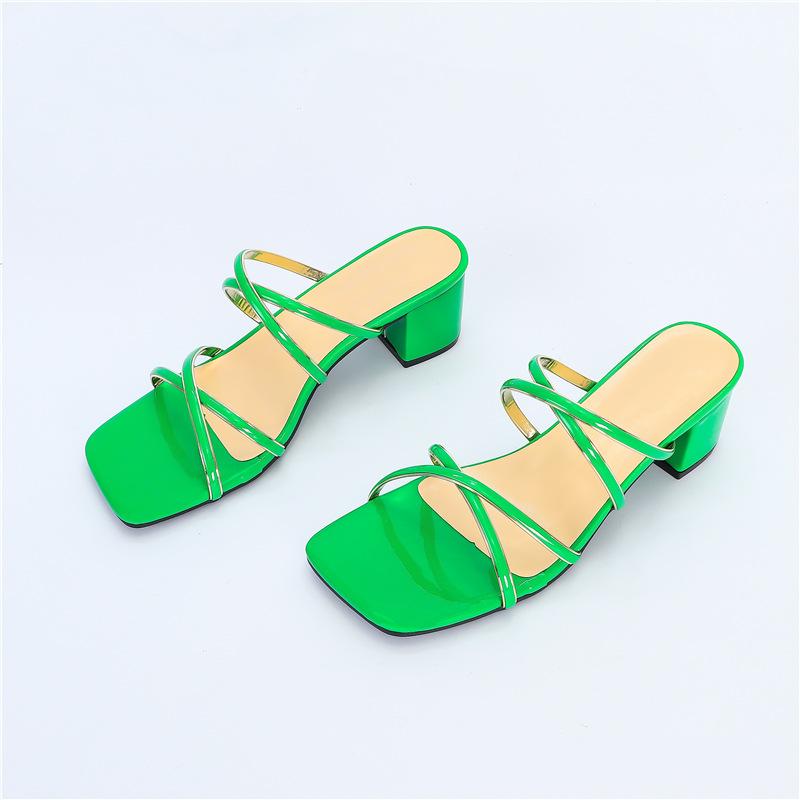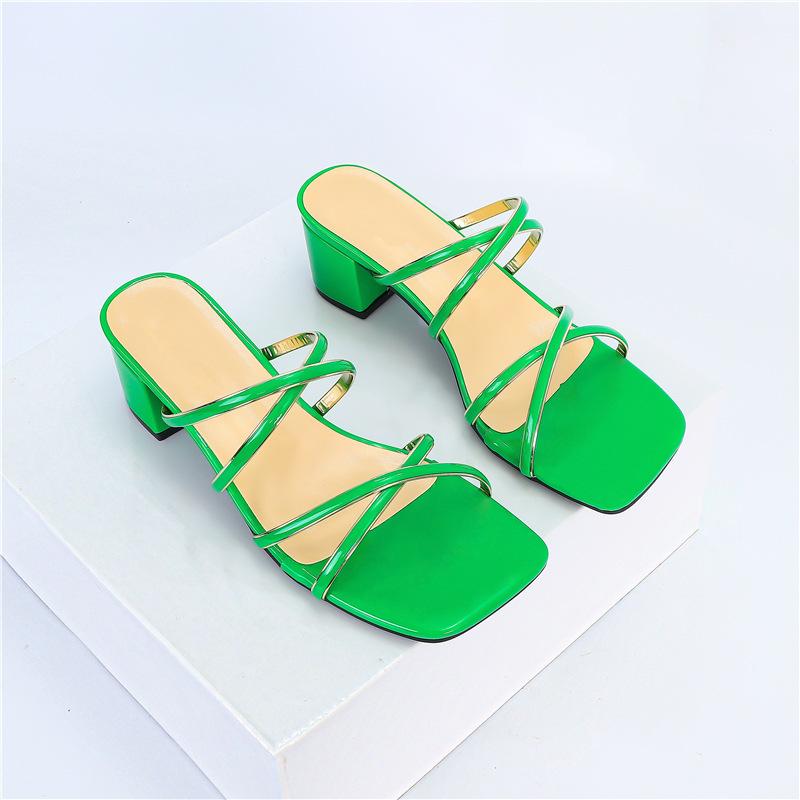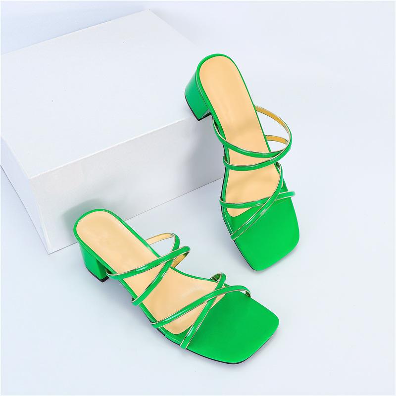Женские сандалии новые квадратный носок перекрестные ремешки золотой край обувь сексуальные толстый каблук высокий каблук сандалии женские