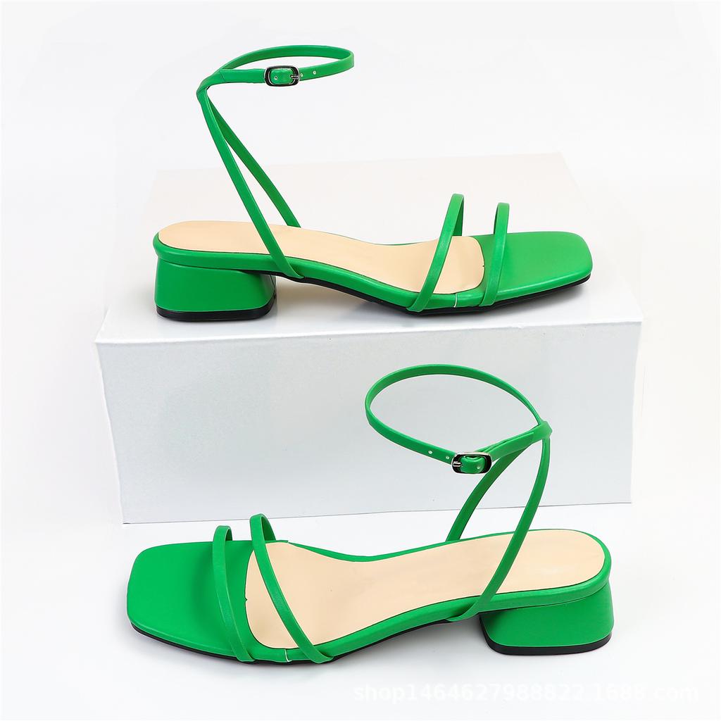Женские летние туфли с открытым носком, квадратным носком, толстым каблуком, на одной педали, универсальные и удобные, сочетаются с босоножками на высоком каблуке
