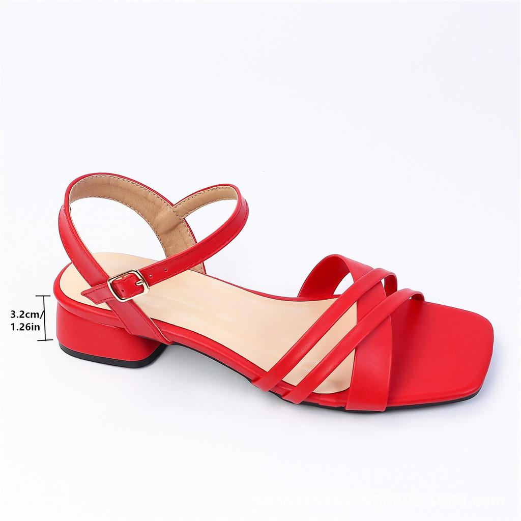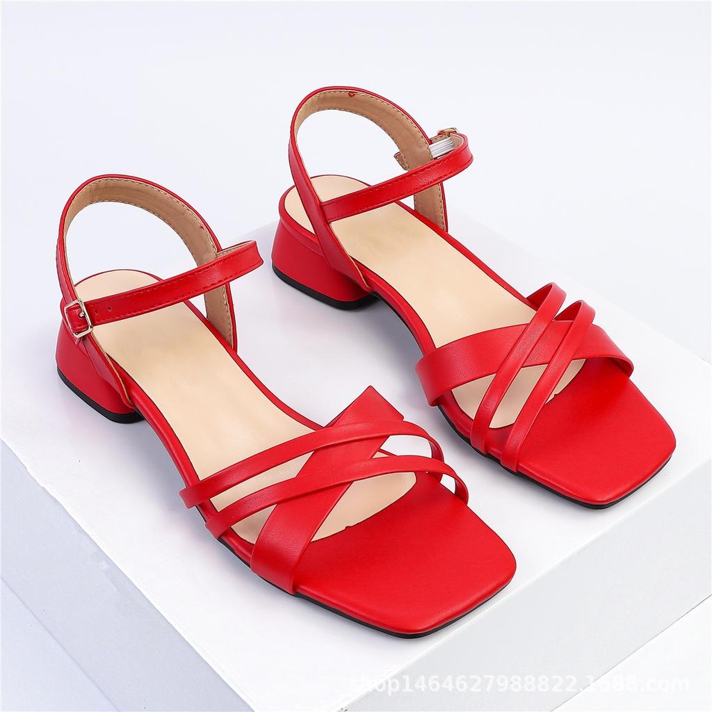 Женские босоножки на высоком каблуке с квадратным носком, открытым носком, перекрестными ремешками и толстым каблуком — это модная и универсальная обувь с простым характером.