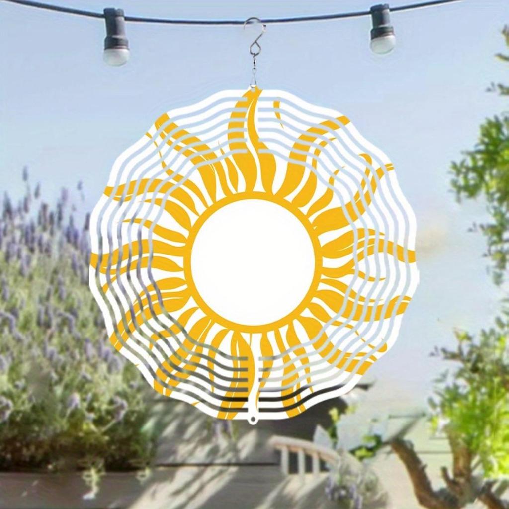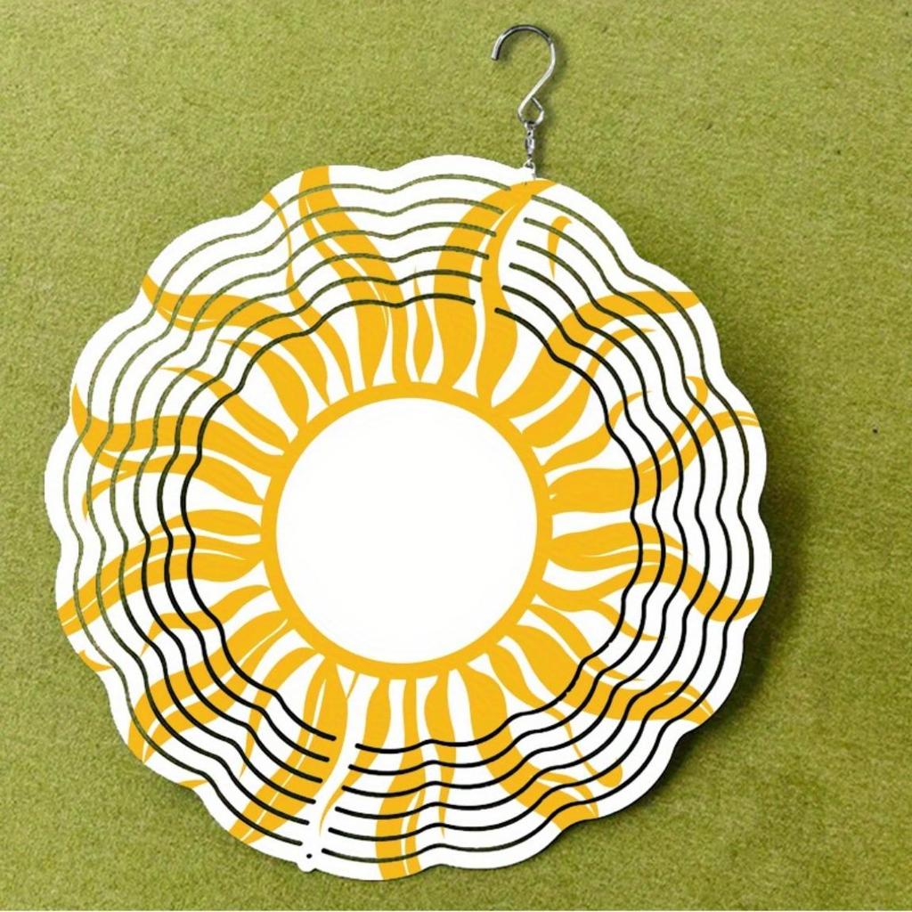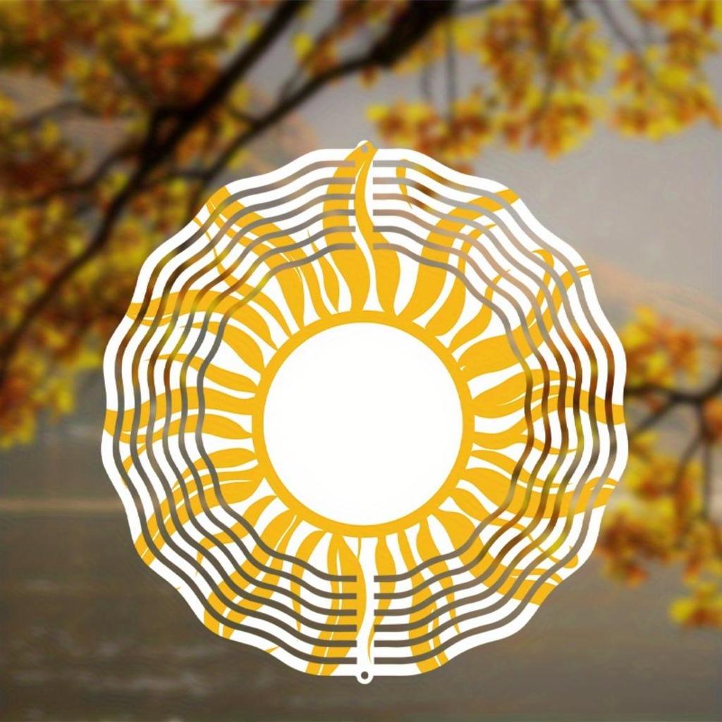 Металлический ветряной спиннер «Солнечный взрыв» Вращающийся на 360 градусов Подвесной художественный колокольчик Яркий желтый Белый дизайн солнца Элегантный декор для сада балкона Все сезоны