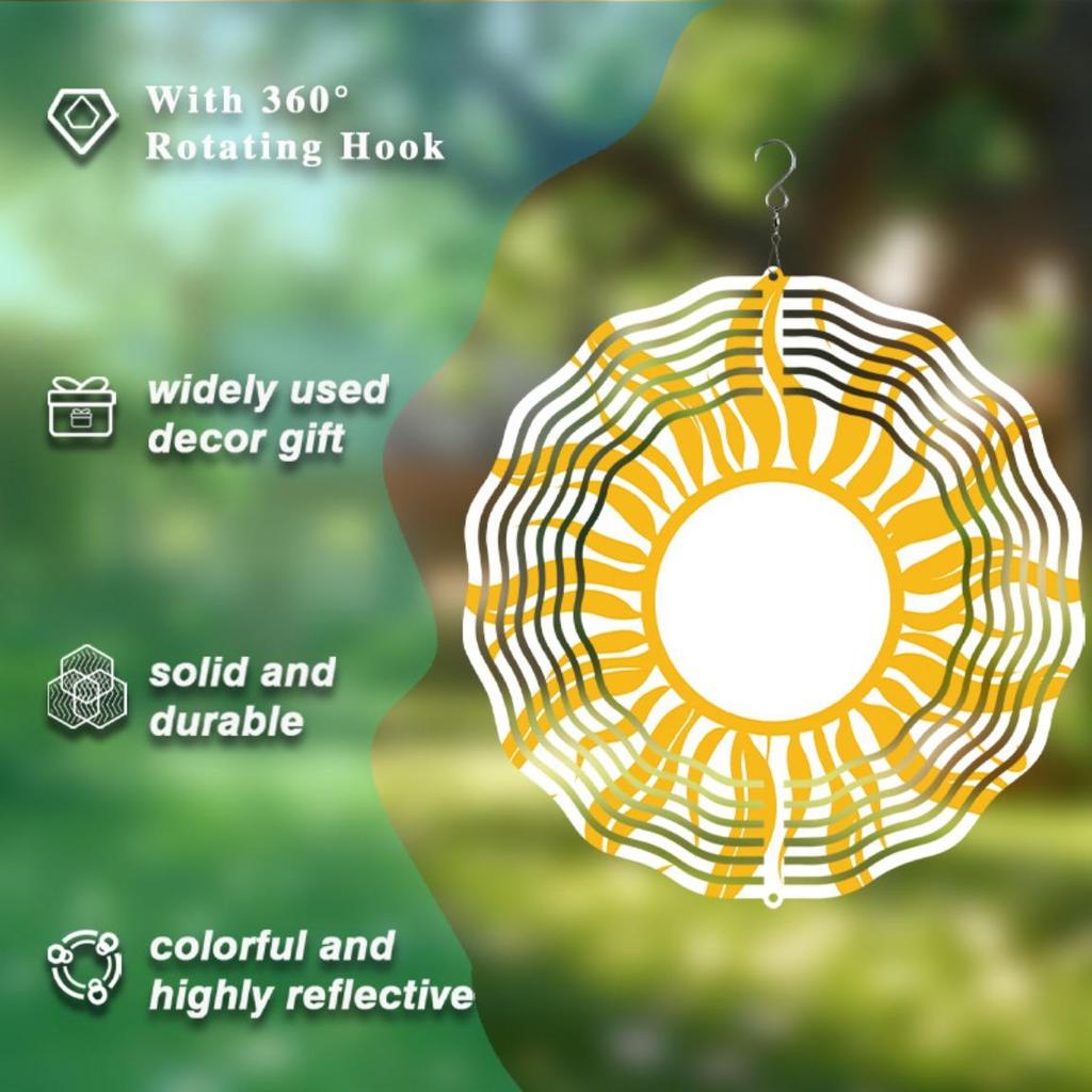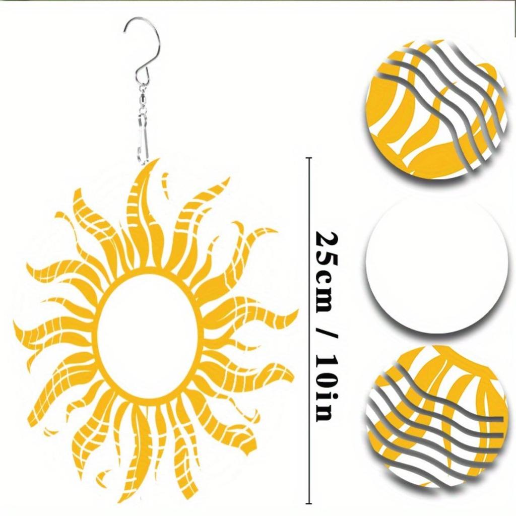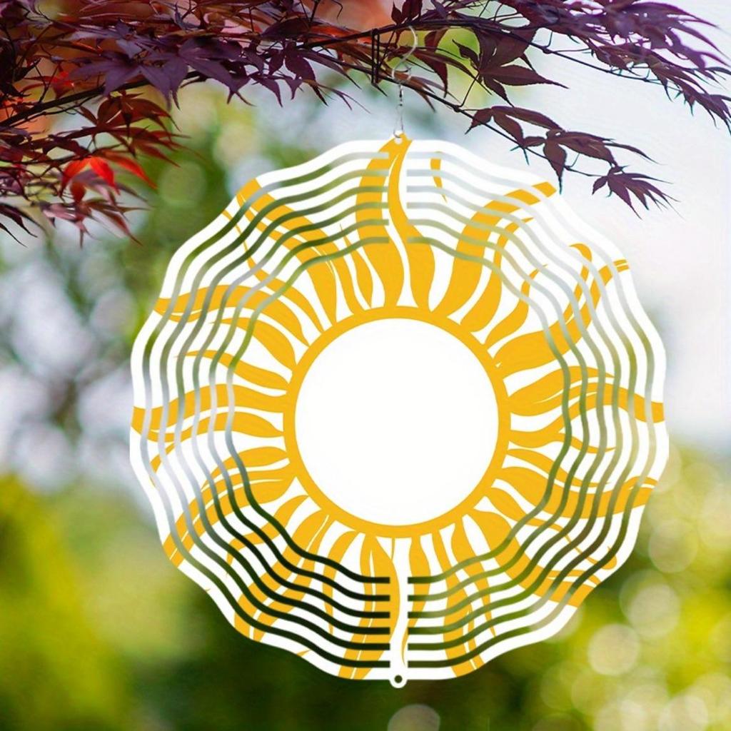 Металлический ветряной спиннер «Солнечный взрыв» Вращающийся на 360 градусов Подвесной художественный колокольчик Яркий желтый Белый дизайн солнца Элегантный декор для сада балкона Все сезоны
