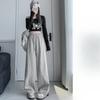 Весенне-осенние новые брюки с высокой талией, свободные, с широкими штанинами, повседневные брюки с вставками