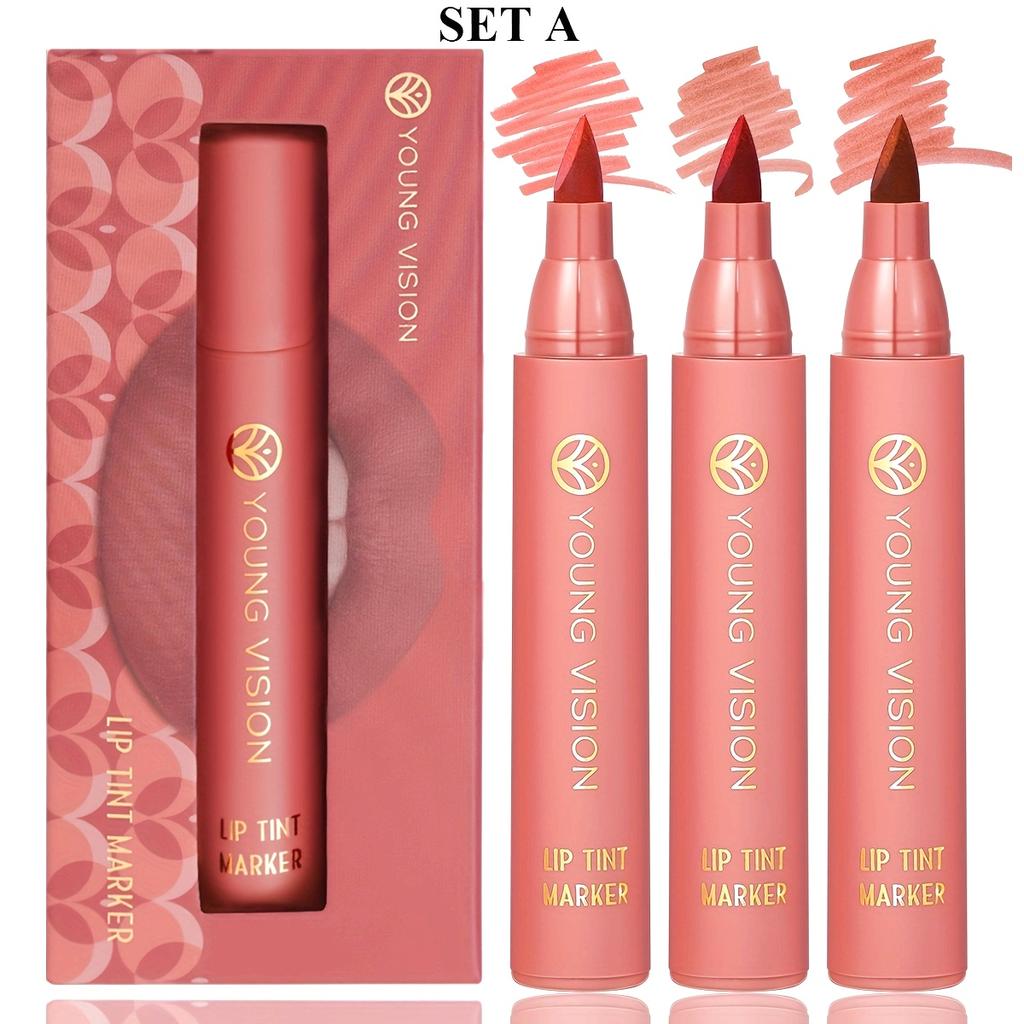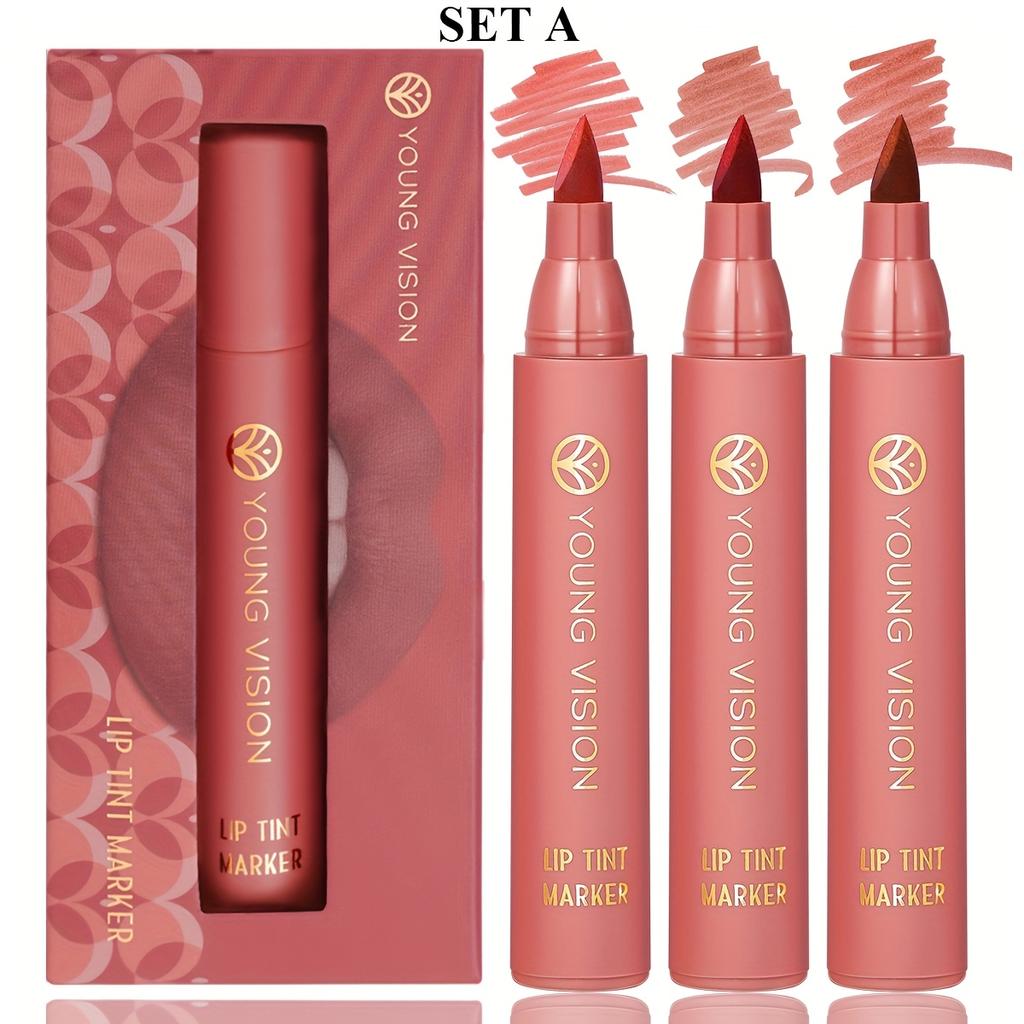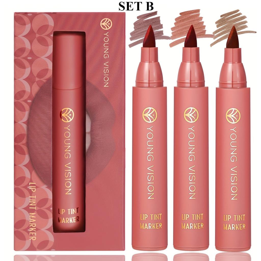 Набор тинтов-маркеров для губ 3 шт., Легкий тинт для губ, Жидкая помада с нюдовыми матовыми оттенками, Карандаш для губ и стик 2-в-1, Стойкий и водостойкий