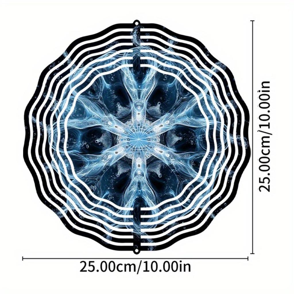 2D Metal Wind Spinner Ornament for Garden Decor Intricate Blue and Golden Design Indoor Outdoor Holiday Gift for All Occasions
