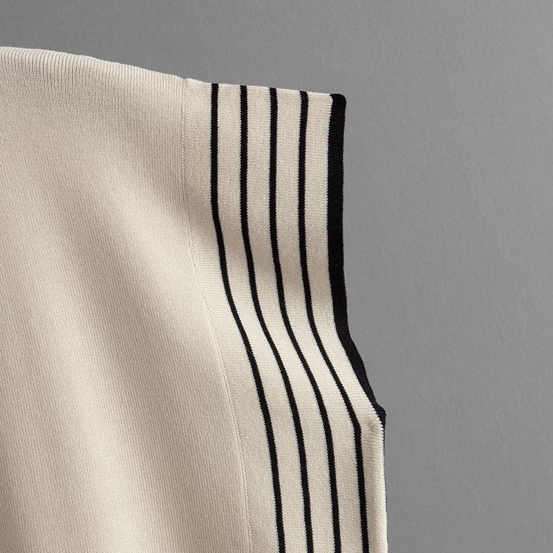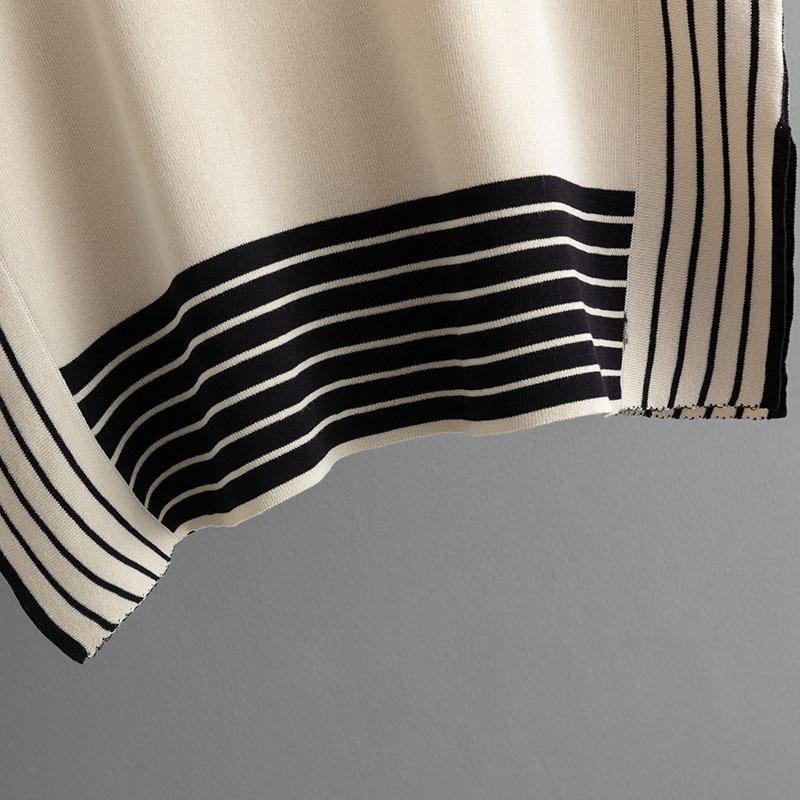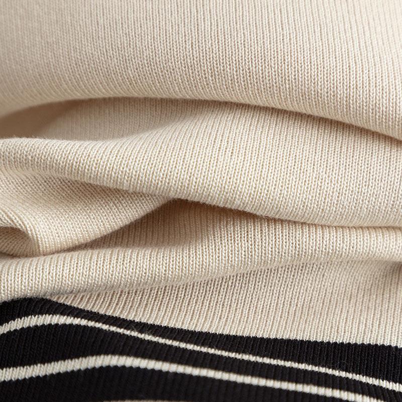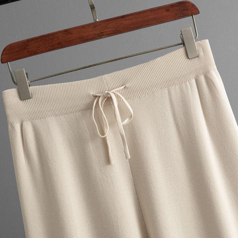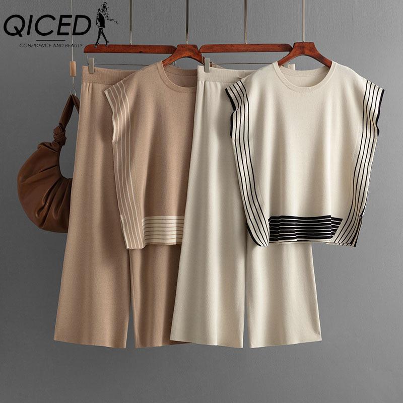 QICED Модный набор: Женский полосатый лоскутный трикотажный свитер свободного кроя с круглым вырезом, брюки-двойка с высокой посадкой, прямые широкие брюки