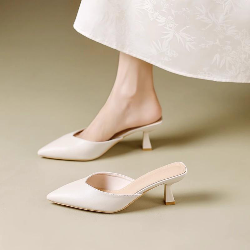 Баотоу женские новые летние ленивые на одном педале не утомляют ноги 6 см полуподдержка для ношения на улице прохладные шлепанцы