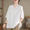 Летняя ретро хлопково-льняная блузка топ для женщин свободного кроя пуловер художественная ретро повседневная рубашка с коротким рукавом