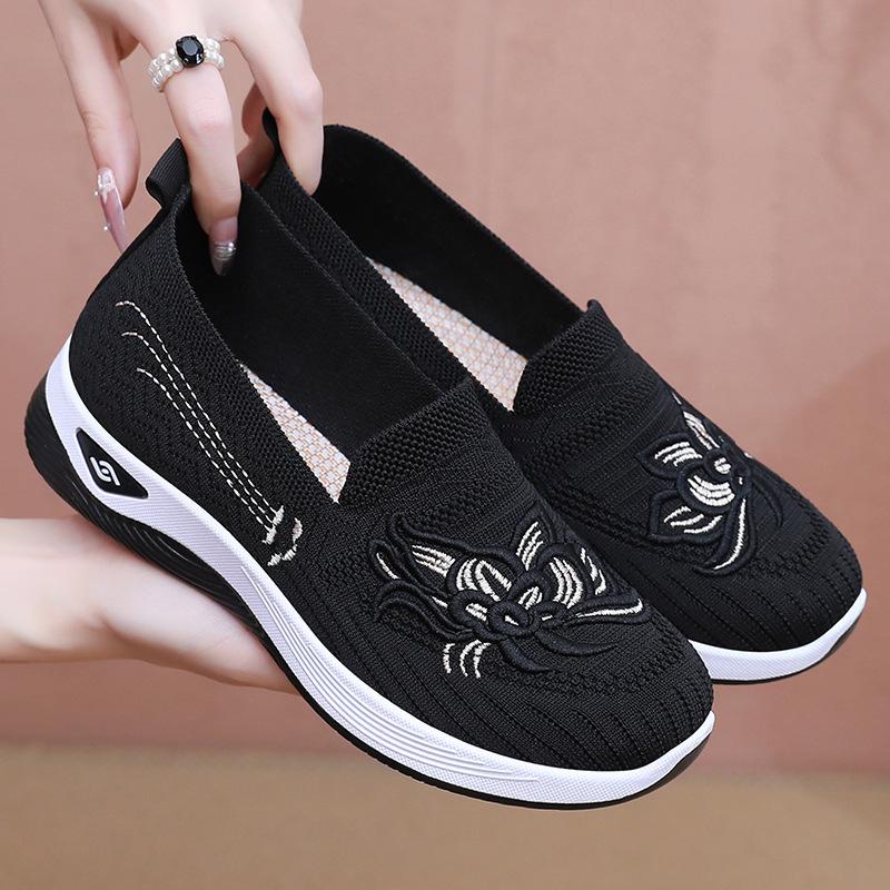 Женская летняя обувь с вышивкой, тканевые туфли старого Пекина, женская универсальная удобная повседневная обувь, ленивые туфли на одном педале, обувь для мамы