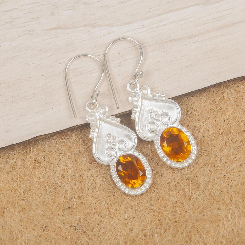 Украшения с цитрином, Серьги из стерлингового серебра 925 пробы, Ювелирные изделия с драгоценными камнями, Серьги ручной работы, На День благодарения