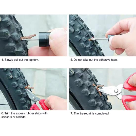 Быстрая и беспроблемная эксплуатация: Ремонт шин занимает всего 3 минуты, при этом не требуется снимать покрышку, что позволяет быстро устранить внезапную утечку воздуха на велосипедах или мотоциклах, обеспечивая бесперебойную езду.