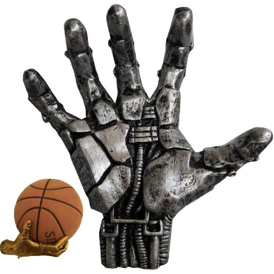 Смола ремесла:Настенный держатель для баскетбольного мяча. Изготовленная из качественной смолы, эта скульптура руки робота привлекает внимание своим замысловатым дизайном и прочной конструкцией, которая наверняка впечатлит всех, кто ее увидит.