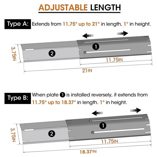 Регулируемый размер для универсальной посадки: Регулируемая конструкция этих тепловых экранов для горелок духовки позволяет им подходить к различным размерам гриля, что делает их подходящими для большинства газовых грилей с трубчатыми горелками.