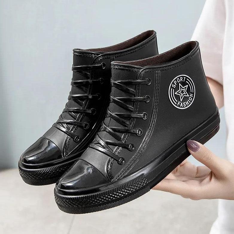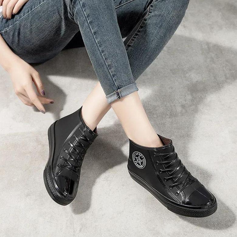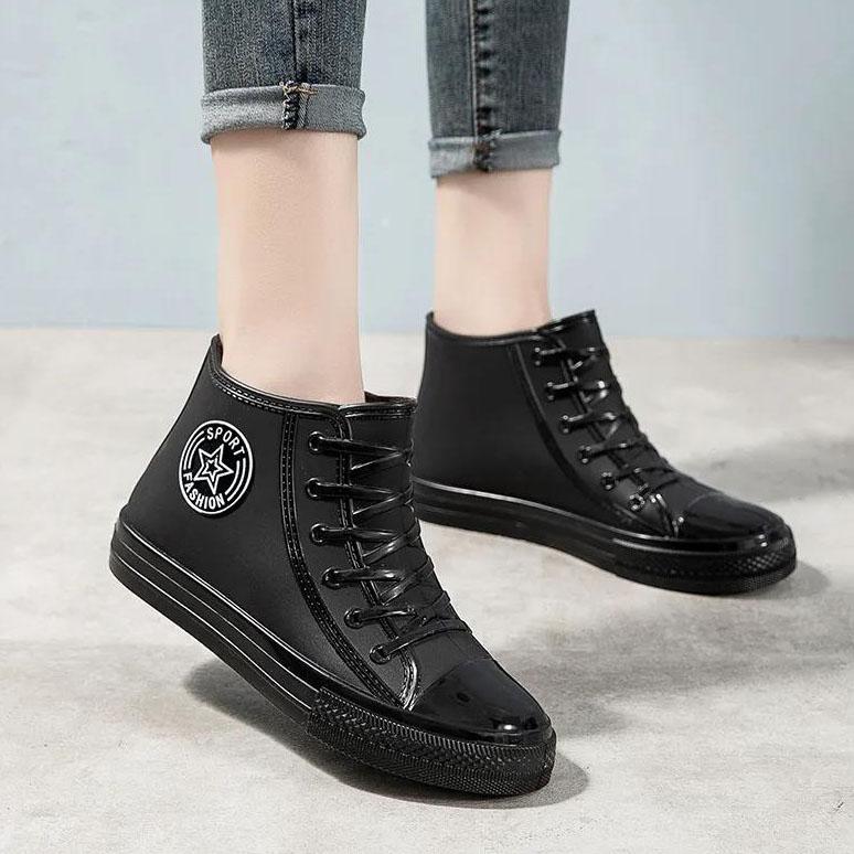 Резиновая обувь, женские непромокаемые непромокаемые сапоги, ботильоны, женская обувь для воды, непромокаемые ботильоны, ботильоны с хлопковым чехлом на плоской подошве