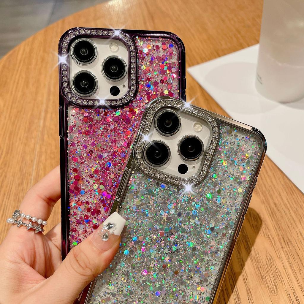 Iphone16promax Подходит для чехла для телефона iPhone 15 с роскошным водным бриллиантом 14 Защитный чехол с блестками из смолы для женщин