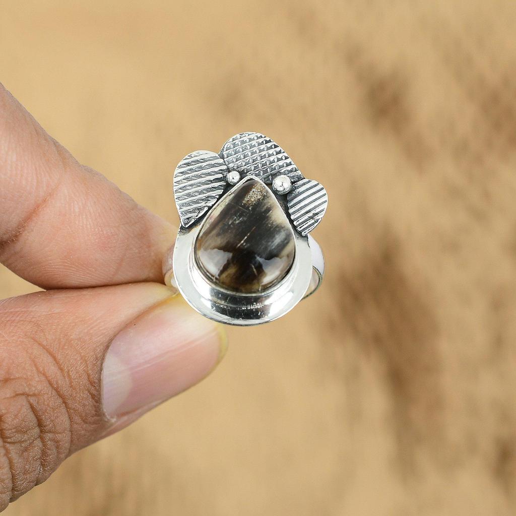 925 Sterling Silver Natural Peanut Wood Jasper Promise Statement Ring Jewelry