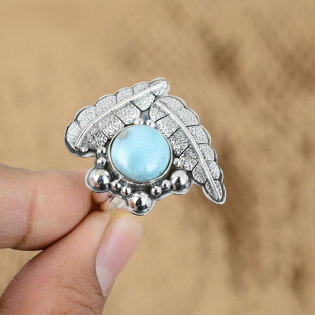 Натуральный Ларимар Драгоценный камень Многокаменный Регулируемое кольцо Серебро 925 пробы Для девочек
