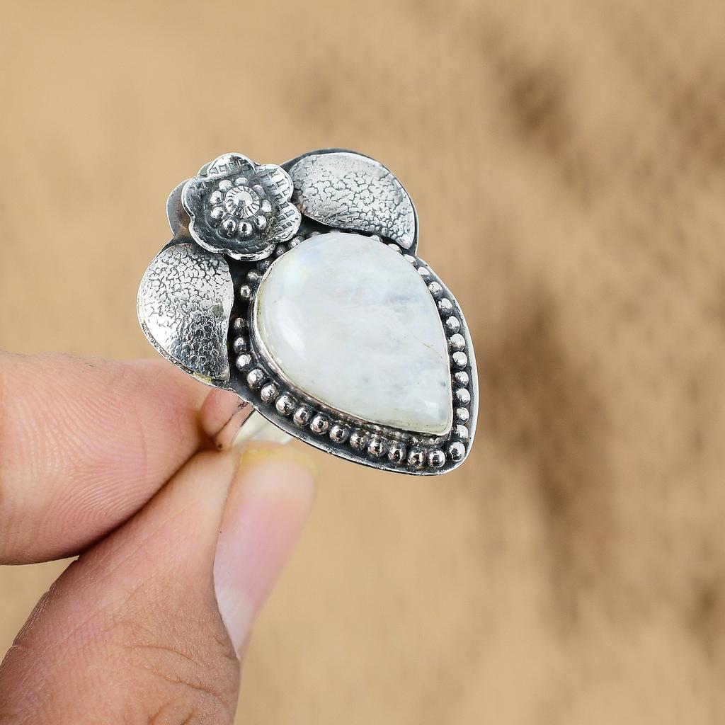 Распродажа ко Дню матери Кольцо-обещание с камнем лунный камень-радуга в виде цветка Ювелирное изделие из серебра 925 пробы