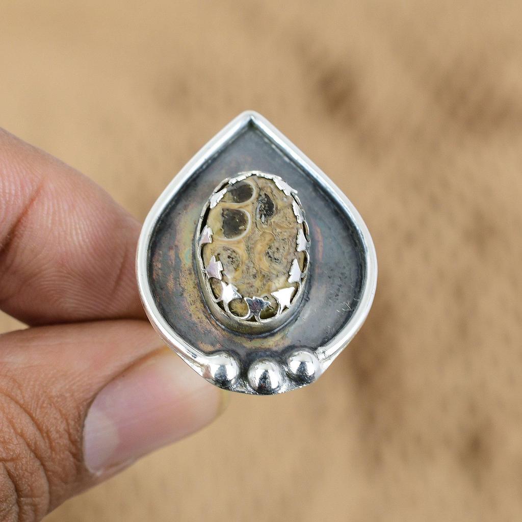 Кольцо-заявление из стерлингового серебра 925 пробы с натуральным агатом туррителла